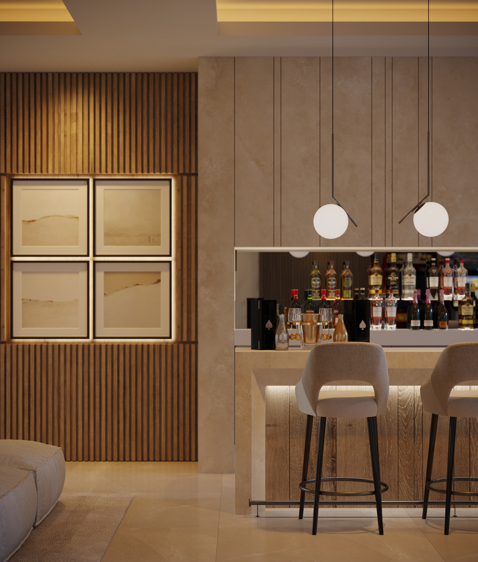 Through careful space planning, lighting design, acoustic strategy and refined material selection, we create entertainment spaces that are both immersive and architecturally cohesive.