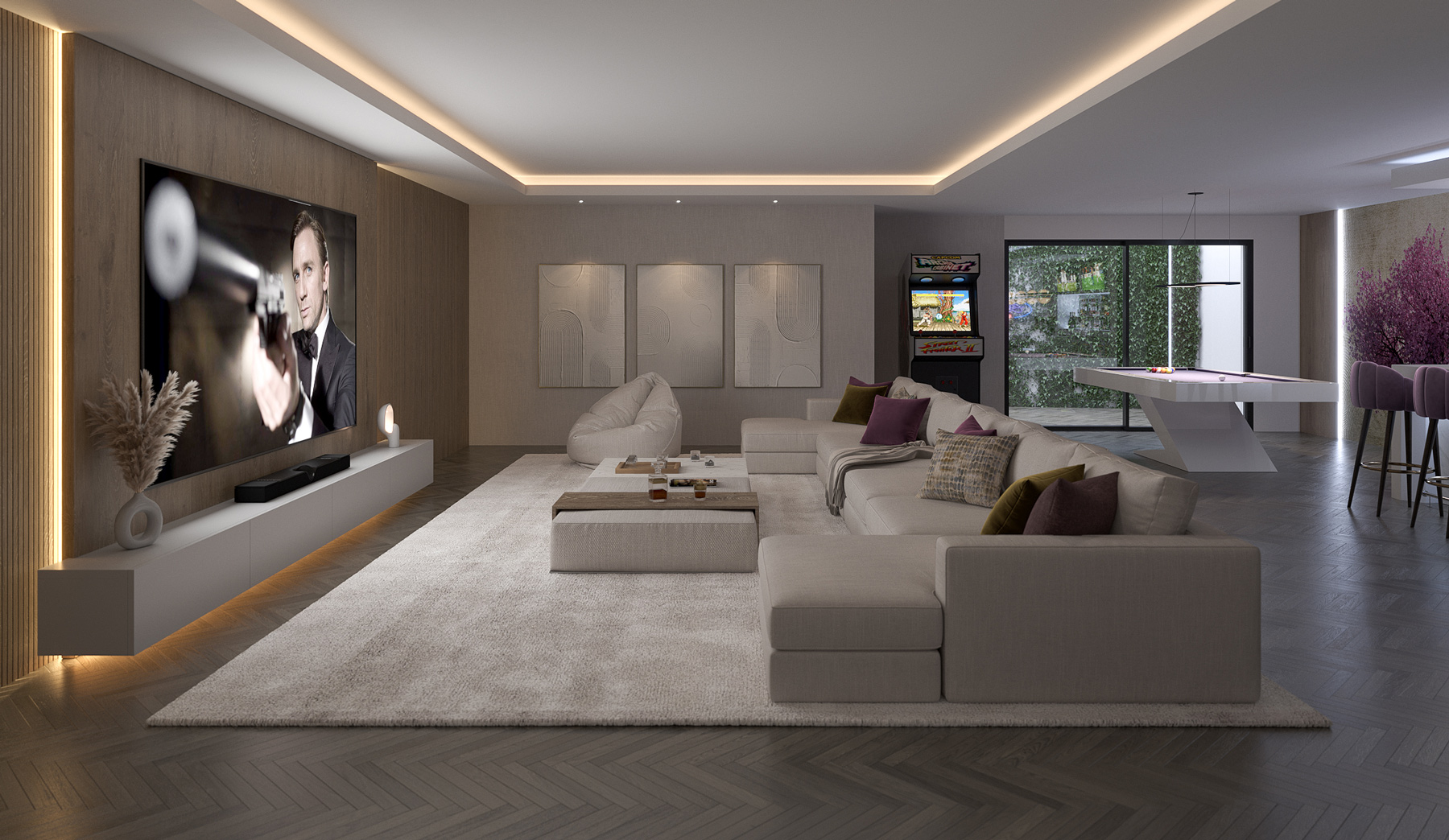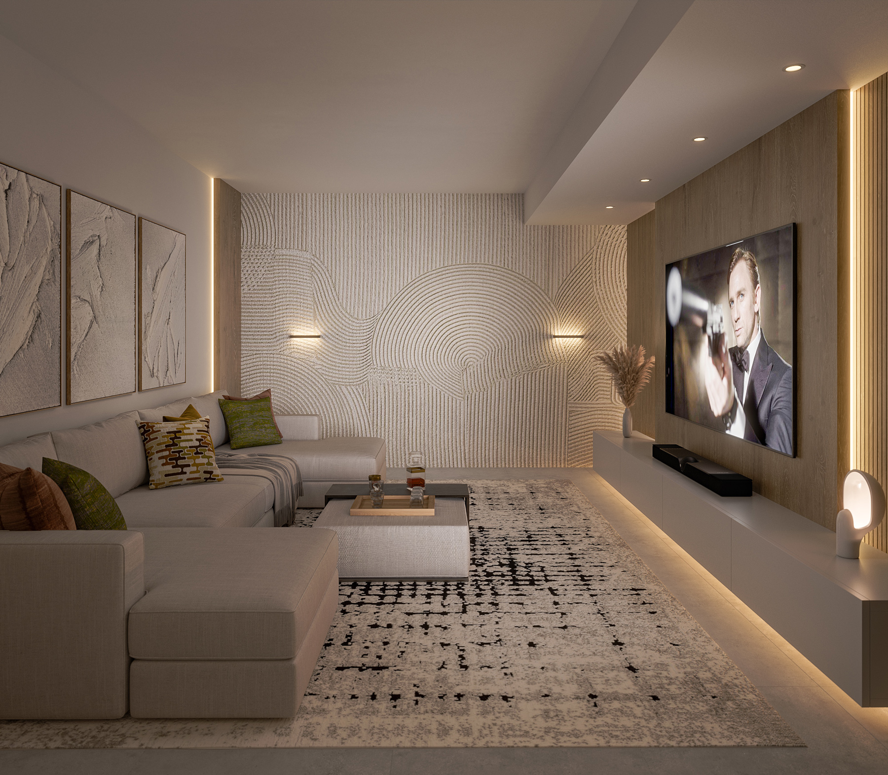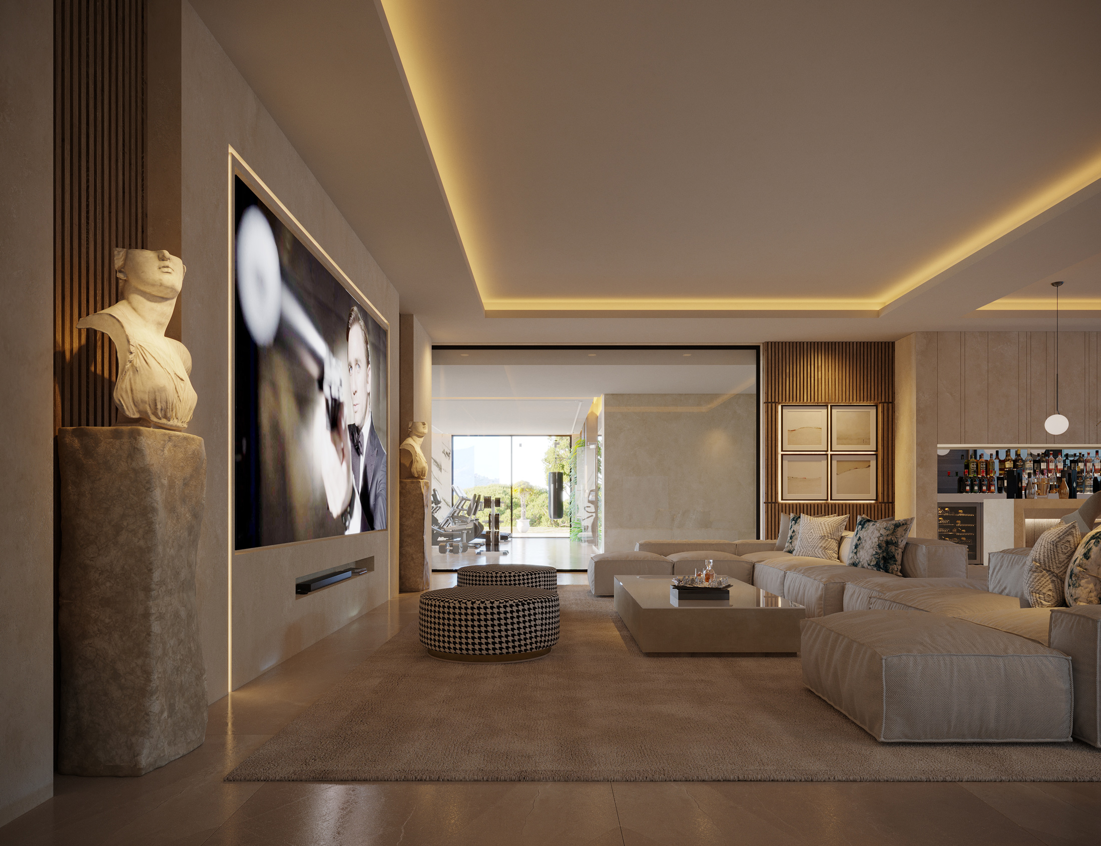 From private cinema rooms to bespoke playrooms, our approach combines spatial planning, lighting design, acoustic strategy and refined material selection — creating spaces that feel intentional, seamless and architecturally integrated into your home in Marbella.